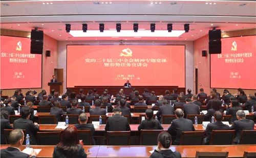11月25日,根據(jù)國務院國資委黨委和中國電建黨委工作安排,江西水電公司黨委舉辦了黨的二十屆三中全會精神專題黨課暨形勢任務宣講會。 會議以《全面貫徹黨的二十屆三中全會精神 推動公司高質(zhì)量發(fā)展再上新臺階》為題,全面系統(tǒng)地解讀了黨的二十屆三中全會精神的重要意義、基本內(nèi)容,具體闡述了進一步全面深化改革的重點任務和國資國企改革內(nèi)容,引導公司黨員、干部正確認識當前經(jīng)濟形勢和公司面臨的改革發(fā)展形勢任務,并聚焦公司改革發(fā)展重點提出推動高質(zhì)量發(fā)展的思路和方向。 會議指出,公司正處在全面深化改革的關鍵期,推動轉(zhuǎn)型升級的關鍵期,面對新形勢、新任務、新挑戰(zhàn),既要看到短期波動的“形”,更要看到長期發(fā)展的“勢”,保持戰(zhàn)略定力,增強發(fā)展信心,錨定目標任務,以更加強烈的責任擔當,砥礪前行,搶抓機遇,應對挑戰(zhàn),不斷拓寬發(fā)展新空間,塑造新優(yōu)勢,增添新動能。 會議要求,各單位要持續(xù)提升核心競爭力,強化戰(zhàn)略使命,全力抓好市場營銷,推動經(jīng)營穩(wěn)步增長;要強化管理提升,堅持創(chuàng)新驅(qū)動引領,提高項目精益化管理水平,著力防范化解風險,提升發(fā)展效能效率;要縱深推進全面深化改革,做實做細任期制和契約化管理,加強授放權(quán)管理工作,增強發(fā)展活力動能;要堅持黨建統(tǒng)領,抓好項目黨建工作,加強支部品牌建設,縱深推進全面從嚴治黨,持續(xù)賦能高質(zhì)量發(fā)展。 會議強調(diào),面對國資國企改革任務,江西水電黨委使命光榮,重任在肩,始終把學習好、貫徹好、落實好黨的二十屆三中全會精神作為重大政治任務,發(fā)揚改革精神,落實改革舉措,堅定不移做強做優(yōu)做大國有企業(yè),持續(xù)推動公司高質(zhì)量發(fā)展再上新臺階。 會議設置主會場和視頻分會場,公司在昌領導班子成員、高管、副總師、高級職員、各職能部門負責人、二級單位黨政主要負責人及部分黨員代表參加,共計150余人。 |