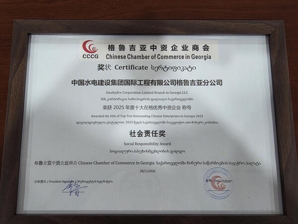 日前,在格魯吉亞中資企業(yè)商會舉辦的2026年新春年會上,中國水電國際工程公司格魯吉亞分公司被授予“2025年格魯吉亞十大優(yōu)秀中資企業(yè)”稱號及“社會責(zé)任獎”。中國駐格魯吉亞大使館商務(wù)參贊趙秋艷出席儀式并頒獎。 格魯吉亞是水電十六局的自主經(jīng)營國別,其國別代表及中國水電國際工程公司格魯吉亞分公司總經(jīng)理均由水電十六局派員出任。此次殊榮,是商會對水電十六局長期以來堅持合規(guī)經(jīng)營、嚴守安全環(huán)保底線的充分認可,也是對其在屬地化發(fā)展方面卓越成績的高度嘉獎。在項目履約中,水電十六局積極推動屬地采購,大幅提升本地員工雇傭比例,以實際行動踐行央企社會責(zé)任,樹立了中國企業(yè)的良好形象。 在項目實施過程中,水電十六局積極與所在地政府保持緊密聯(lián)動,切實解決困擾當(dāng)?shù)孛癖姷膶嶋H問題。在F0公路項目實施期間,項目部主動義務(wù)協(xié)助沿線村莊改建通行道路、新建排水溝渠,改善了村鎮(zhèn)基礎(chǔ)設(shè)施;2025年初,面對強暴雪天氣,項目部迅速響應(yīng)政府號召,全力協(xié)助開展道路除雪保通任務(wù),有效保障了村民出行安全,贏得了當(dāng)?shù)卣兔癖姷母叨荣澴u。 |