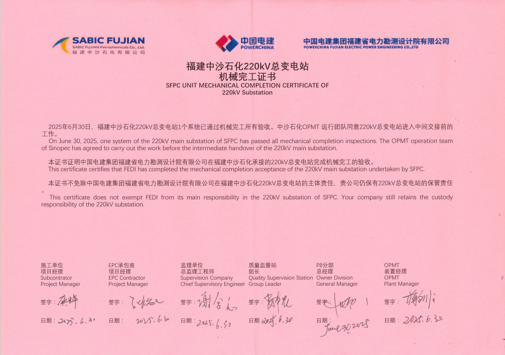2025年6月30日,福建院總承包的?“一帶一路”國際產能合作的重大戰略工程——福建古雷150萬噸/年乙烯及下游深加工聯合體項目220千伏中沙變電站及配套線路工程順利機械竣工。 用奮進砥礪初心,以實績獻禮七一。福建中沙古雷乙烯項目是國家推動石化產業高質量發展、深化中沙全面戰略伙伴關系、進一步促進“一帶一路”國際產能合作的重大戰略工程,承載著推動地方經濟騰飛、優化能源結構、保障國家能源安全的時代重任。作為整個石化項目的“能源動脈”,220千伏總變電站項目的順利機械竣工,為項目全面投產運行奠定了堅實的能源保障基礎,是福建院以山河為卷,實績作墨,為黨的104年華誕獻上的奮進長卷。 匠心鑄就石化能源動脈,專業賦能中沙共贏新篇。福建院作為項目工程總承包單位和設計單位,自項目啟動以來,全院上下以高度的政治責任感和歷史使命感,迅速組建管理團隊和技術力量,精銳盡出全力以赴保障項目高質量推進。在設計端充分發揮技術優勢,秉持“進取奮斗,擔當協作,始于需求,終于滿意”的理念,攻堅克難,凝心聚力,廣泛應用三維設計、BIM技術進行協同優化,為打造一座現代化、智能化的變電站奠定了堅實基礎。在總承包端堅持“客戶第一、技術為基、創新、信任、共贏”,科學統籌,精細管理。面對工期緊、任務重、交叉作業多、安全壓力大等嚴峻挑戰,項目團隊與各參建方精誠團結,緊密協作,以“特別能吃苦、特別能戰斗、特別能奉獻”的精神,克服了春節假期人力不足、降雨天氣影響施工等重重困難,牢牢守住安全底線,實現了全過程安全生產“零事故”;嚴把質量生命線,確保工程經得起歷史檢驗;爭分奪秒、優化組織,確保了工程按計劃節點穩步推進。 落筆未干風已動,翻向新章待墨濃。機械竣工不是終點里程碑,而是沖刺最終勝利的新起點。后續的系統調試、投運送電任務依然艱巨,標準絲毫不能降低。慎終如始,方能完美收官。項目團隊將以更加飽滿的熱情、更加嚴謹的態度,全力做好后續各項工作,確保調試精準高效、消缺徹底到位、驗收順利通過,最終實現變電站安全、可靠、零缺陷投運。繼續發揚奮斗精神,以昂揚奮進的精神狀態,確保項目高質量、高效率推進,為公司的高質量發展貢獻屬于自己的力量 |