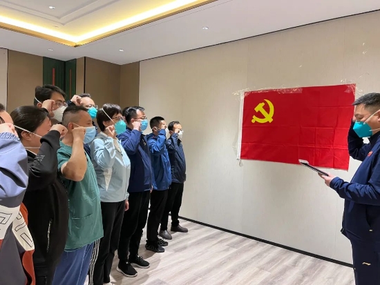 作為央企援滬醫療隊的總領隊、臨時黨委書記,黃河三門峽醫院院長涂學亮帶領醫療隊實地察看同濟大學附屬上海市第四人民醫院和上海市五中臨時改建的方艙醫院情況,組織召開會議研究討論醫療資源分配、各醫療隊存在的困難等問題。他帶領11名黨委委員重溫入黨誓詞,在抗疫一線堅定理想信念和使命初心。